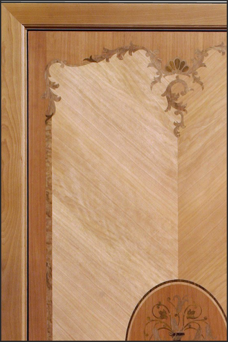Инкрустированная шпоновая рубашка — это собранная вручную мозаика из дерева разных пород. Применяется для декоративной отделки мебели, дверей и предметов интерьера.